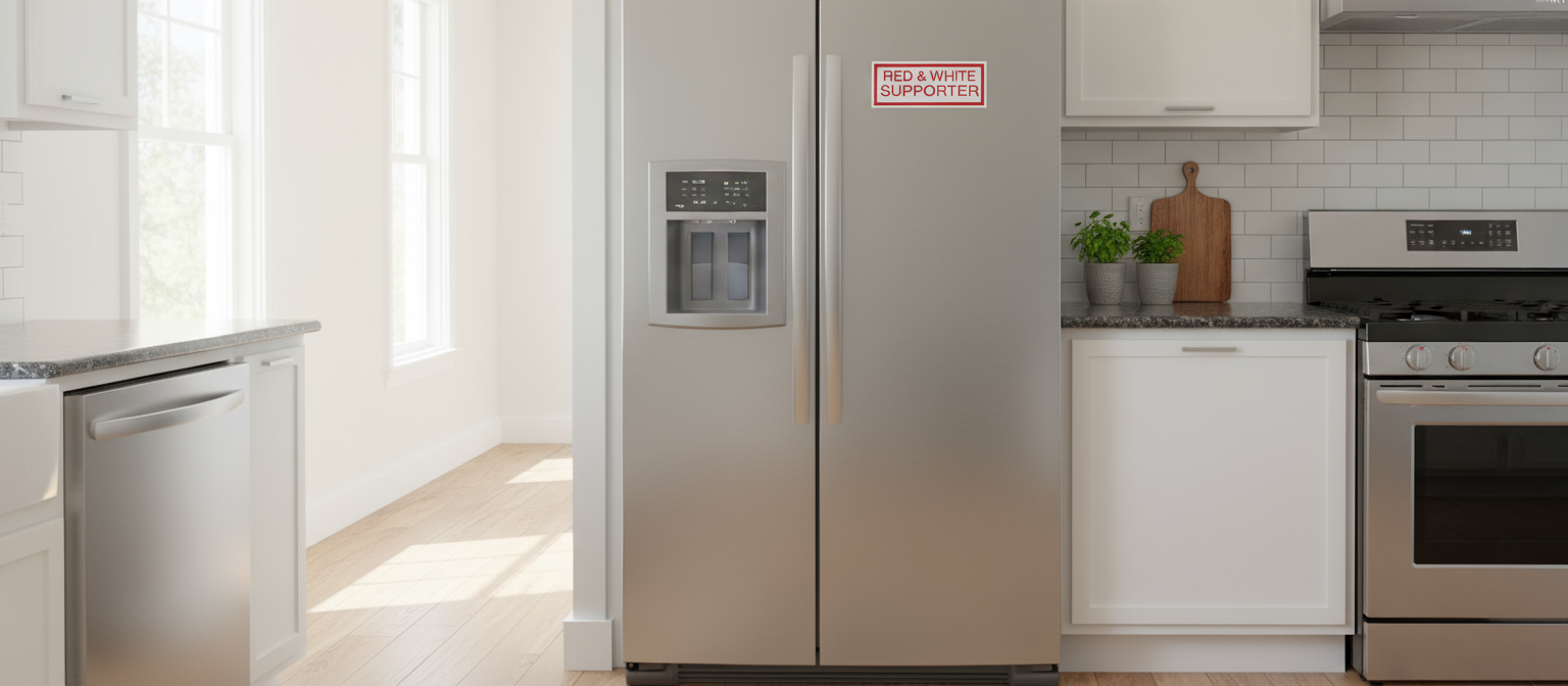 IN THIN LETTERS -RED & WHITE SUPPORTER STICKER
